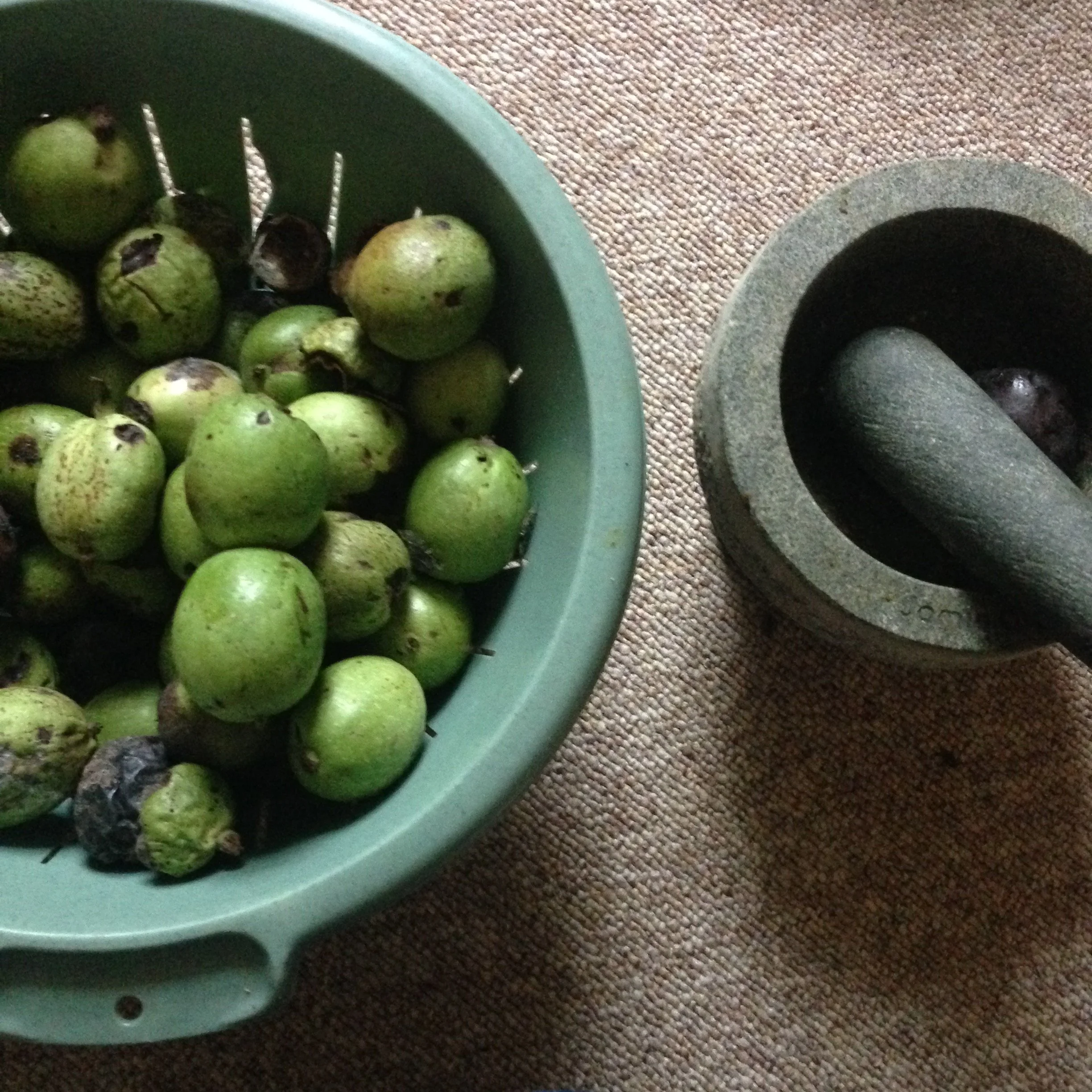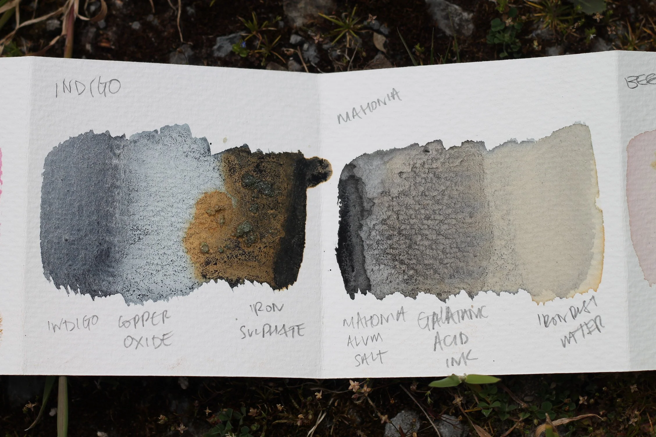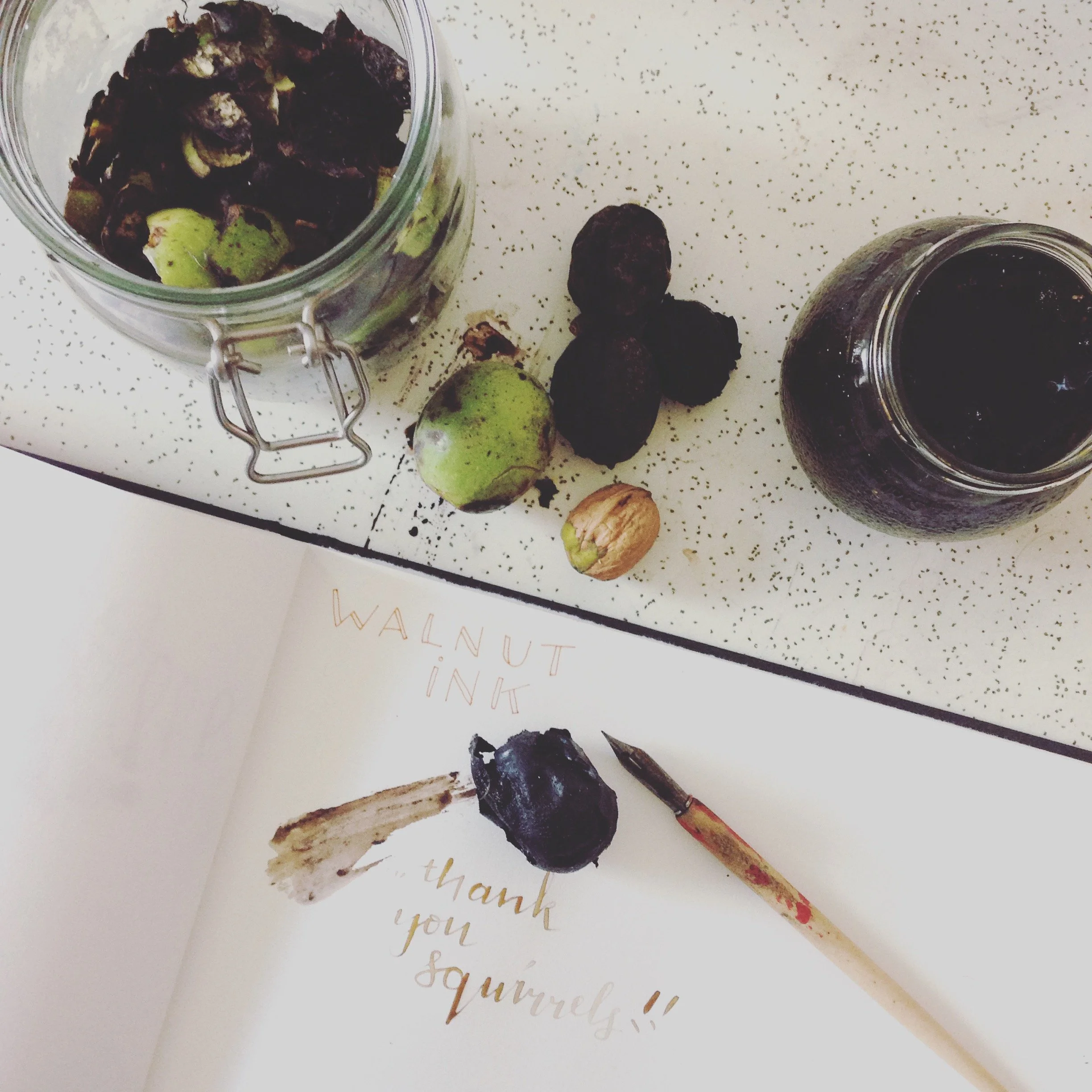I began researching natural dyeing and ink making online and alongside my sign-writing mentor. This began an experimentation period over the next year or so foraging for plant materials and making colour. I began with oak gall and avocado stones.